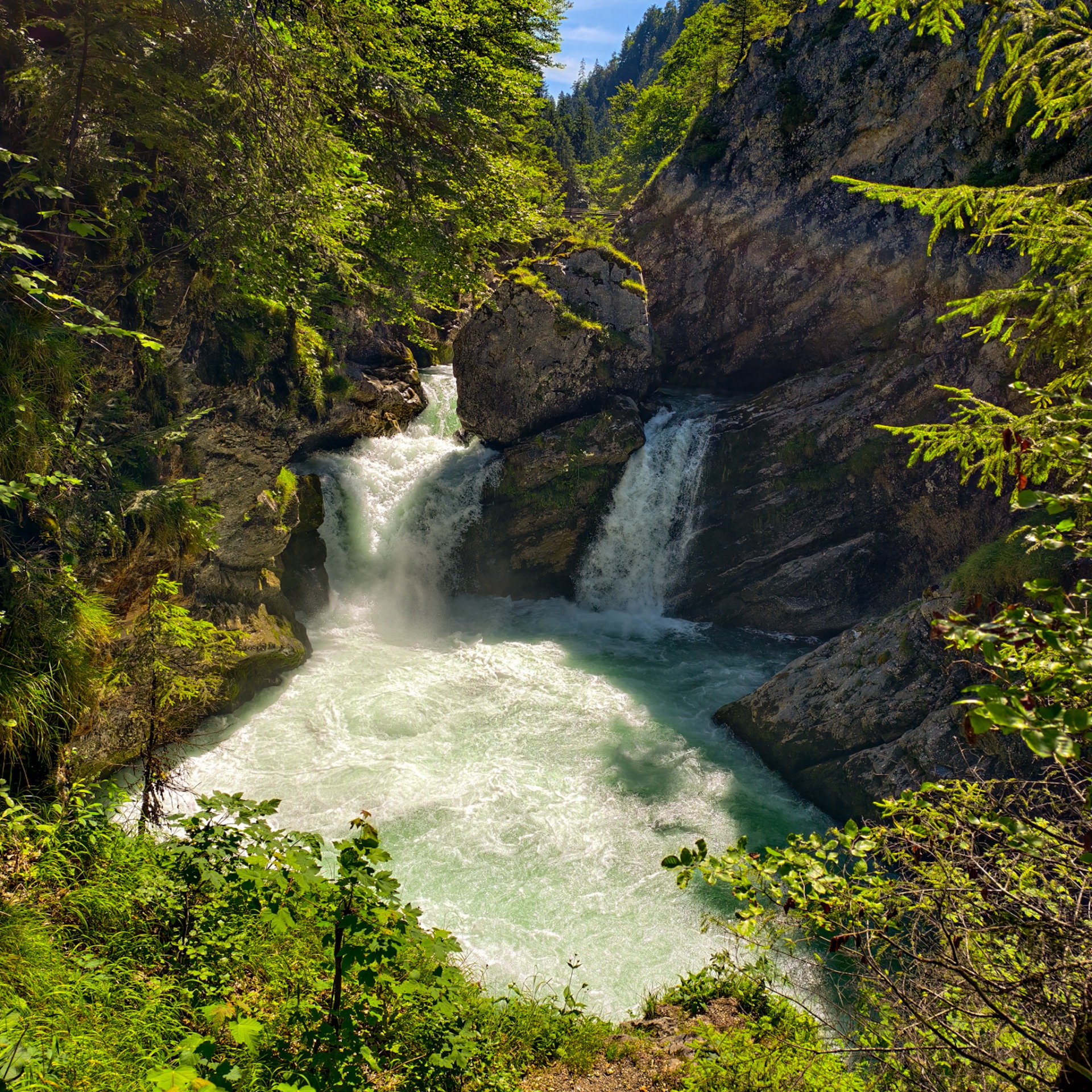 Pießling-Ursprung (16km) Jedná se o nejvýznamnější a opravdu impozantní krasový pramen, ke kterému vede od parkoviště asi půlhodinová příjemná cesta kolem potoka a moc zajímavých vodopádů, které vytékají přímo z dřevěných stavení. V tom místě je zároveň obrovský rozdíl teplot, což zejména při vedrech přijde vhod. Po cestě tam i zpět jsem potkal dohromady tři lidi. Krásná procházka! Parkovišť je tam několik a u toho největšího je fajnové bezplatné WC :)